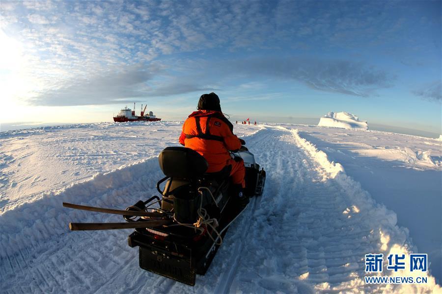 冰上運(yùn)輸之路最后一公里修通,修路小組成員返回“雪龍”號(hào)(12月1日攝)。 搭載中國(guó)第35次南極科考隊(duì)的“雪龍”號(hào)極地考察船日前到達(dá)距離中山站44公里處的陸緣冰區(qū),準(zhǔn)備迎來本次南極科考首場(chǎng)攻堅(jiān)戰(zhàn)——物資卸運(yùn)。一支探冰小組隨即展開海冰探路,以期盡快打通從“雪龍”號(hào)到中山站的冰上運(yùn)輸線,盡早啟動(dòng)冰上運(yùn)貨。 新華社記者 劉詩(shī)平 攝