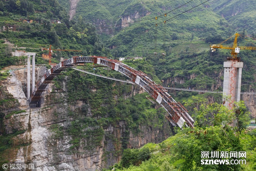 2018年5月30日,云南昭通,鸚哥大橋完成最后一段35米引橋現澆箱梁作業(yè),標志著“鸚哥溜索改橋”主體工程完工,進入最后階段的橋面鋪裝和防護欄施工,預計6月底建成通車。