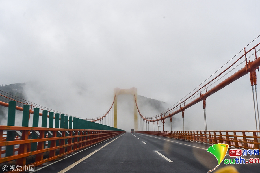 從貴州往云南方向前行十多公里,進(jìn)入云南界普立大橋一頭,有關(guān)部門在高速公路旁開辟一塊平地,專門設(shè)置觀光臺,讓游客有機(jī)會停車駐足觀賞變幻多端的云海。圖片來源:視覺中國