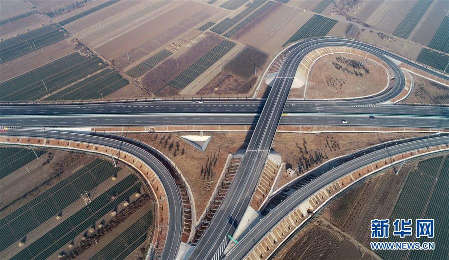 12月16日無人機拍攝的京秦高速公路二期工程河北玉田西進出口處的立交橋。 新華社記者楊世堯攝
