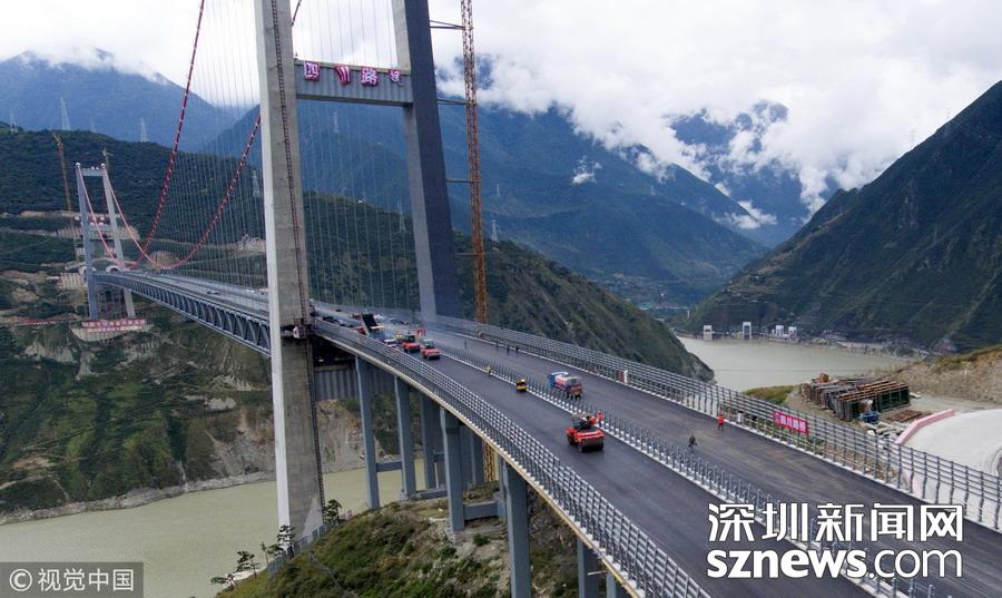 深圳新聞網(wǎng)訊 全長1411米、跨徑1100m、總造價超過10億元,被譽為“川藏第一橋”的雅康高速瀘定大渡河興康特大橋路面施工完成,具備了通行能力。
