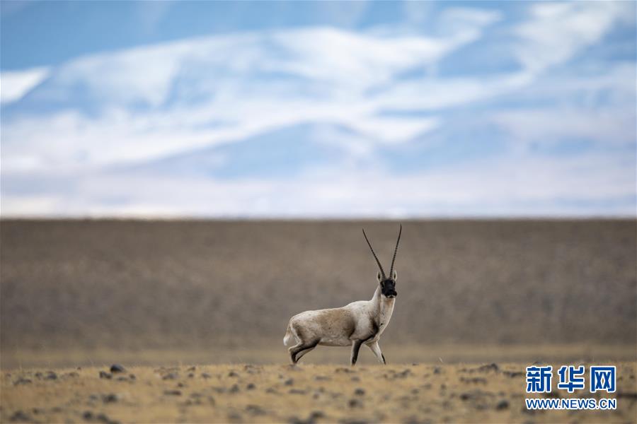 一只藏羚羊在西藏羌塘國(guó)家級(jí)自然保護(hù)區(qū)的原野上活動(dòng)(12月14日攝)。 新華社記者 張汝鋒 攝