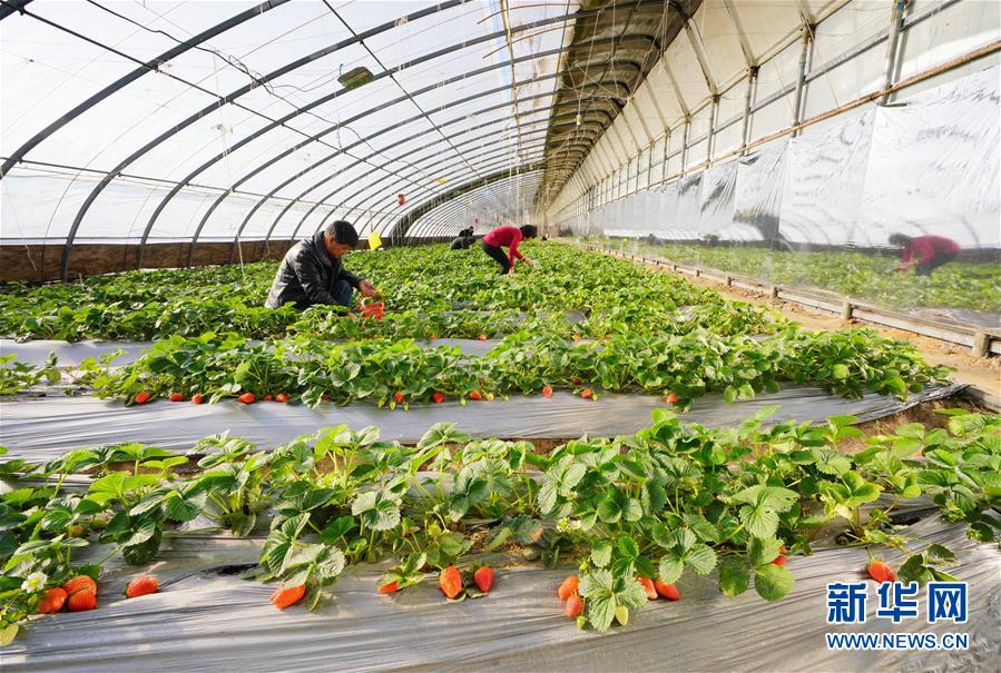 12月15日,游客在唐山市曹妃甸區(qū)一家生態(tài)園的大棚內(nèi)采摘草莓。 新華社記者 楊世堯 攝