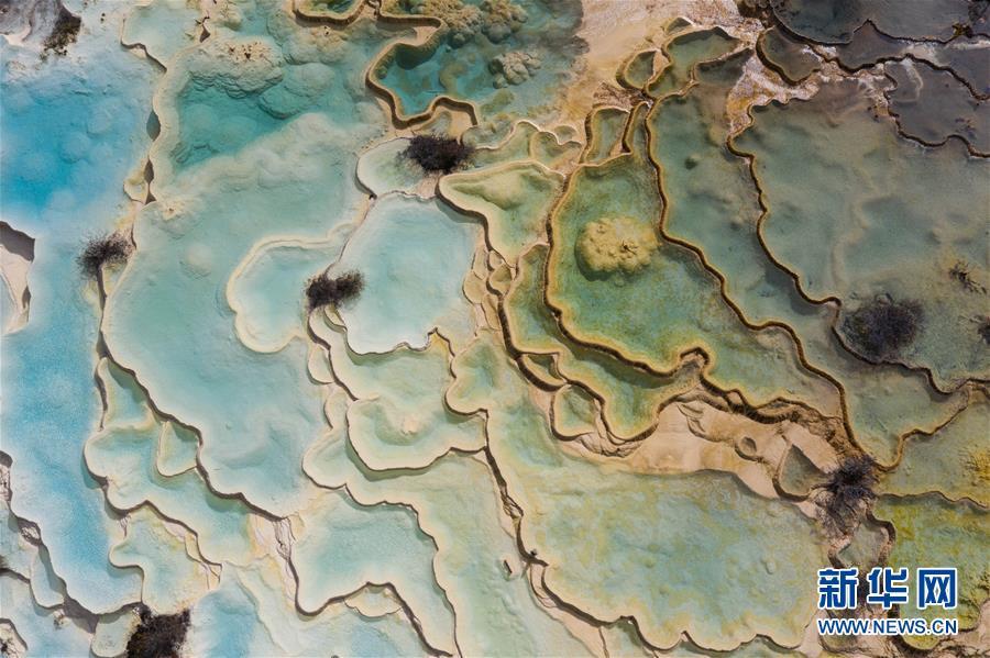 這是2018年10月19日航拍的黃龍溝五彩池一角。 大地之色,俯仰之間;壯美山河,是我的祖國。2018年,新華社記者操縱無人機“飛閱”華夏大地,在最美的時節(jié),定格下她的色彩斑斕。 新華社記者 江宏景 攝