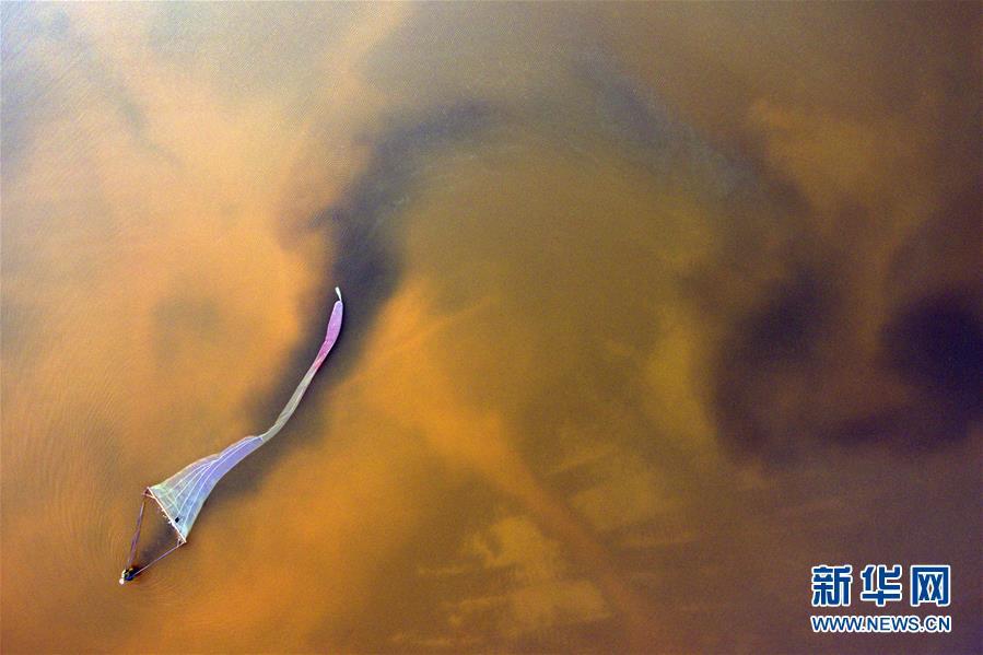 2018年7月6日,捕撈人員在山西運城鹽湖內(nèi)捕撈鹽水蟲。 大地之色,俯仰之間;壯美山河,是我的祖國。2018年,新華社記者操縱無人機“飛閱”華夏大地,在最美的時節(jié),定格下她的色彩斑斕。 新華社記者 曹陽 攝