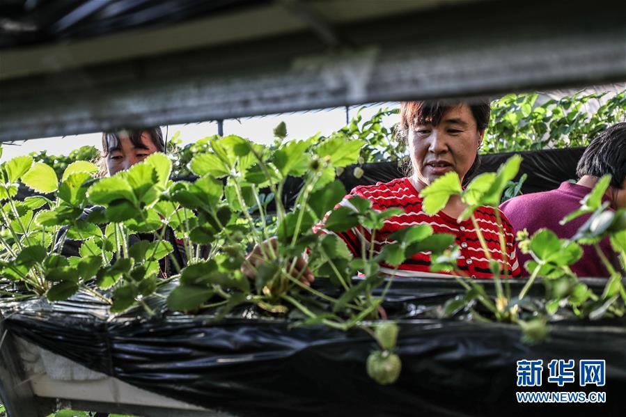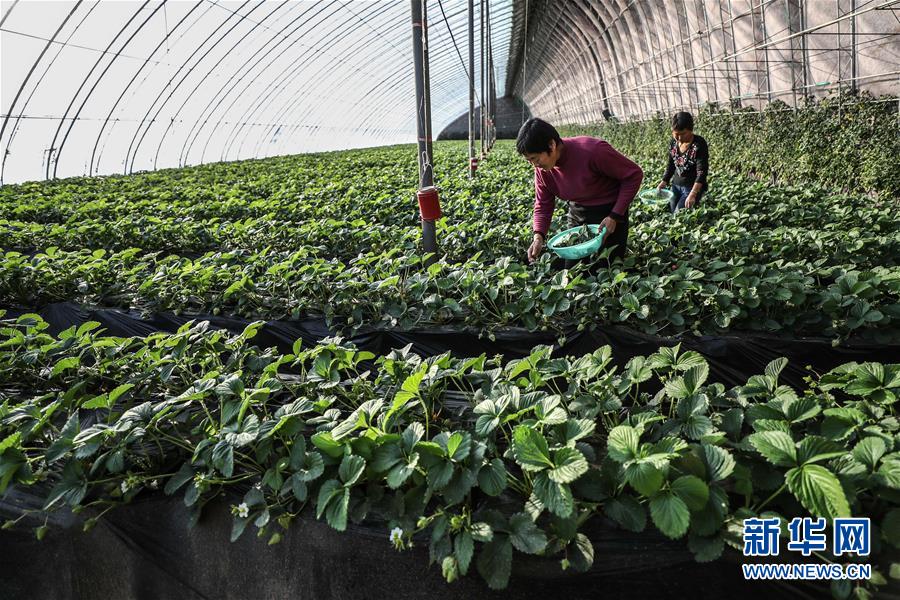 12月19日,農(nóng)戶在大棚里管理草莓。 2017年5月,遼寧省鐵嶺市昌圖縣大四家子鎮(zhèn)方家船口村利用土地確權(quán)成果,由村兩委班子成員領(lǐng)辦創(chuàng)辦了昌圖久晟果木蔬菜種植專業(yè)合作社。到2018年9月,合作社利用產(chǎn)業(yè)扶貧資金、壯大村集體經(jīng)濟扶持資金、村集體用地和村民入股資金建成了11個“股份制大棚”,主要種植草莓等作物,產(chǎn)品通過電商銷往云南、四川、北京、上海等地,預(yù)計第一期可為265名貧困戶每人分紅860元。 新華社記者潘昱龍攝
