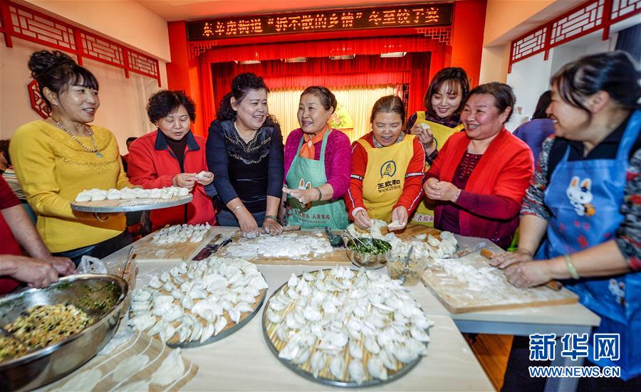 12月20日,老鄰居們一起包餃子。 當日,北京市門頭溝區(qū)東辛房街道一百多名棚戶區(qū)改造后搬進新樓房的老鄰居們聚在一起包餃子、吃餃子,迎接即將到來的冬至。 新華社記者李欣攝