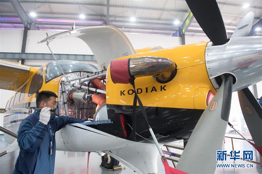 12月20日,在建德市航空小鎮(zhèn),工作人員對一架大棕熊100系列飛機進行日常維護。 當日,浙江省建德市航空小鎮(zhèn)通航制造板塊首架飛機下線交付。此次下線交付的大棕熊100系列Ⅱ飛機由美國Quest飛機制造公司出品,有望在通用航空領域發(fā)揮作用。建德市自2016年開始航空小鎮(zhèn)創(chuàng)建,2017年被列入全國第二批特色小鎮(zhèn)名單。 新華社記者翁忻旸攝