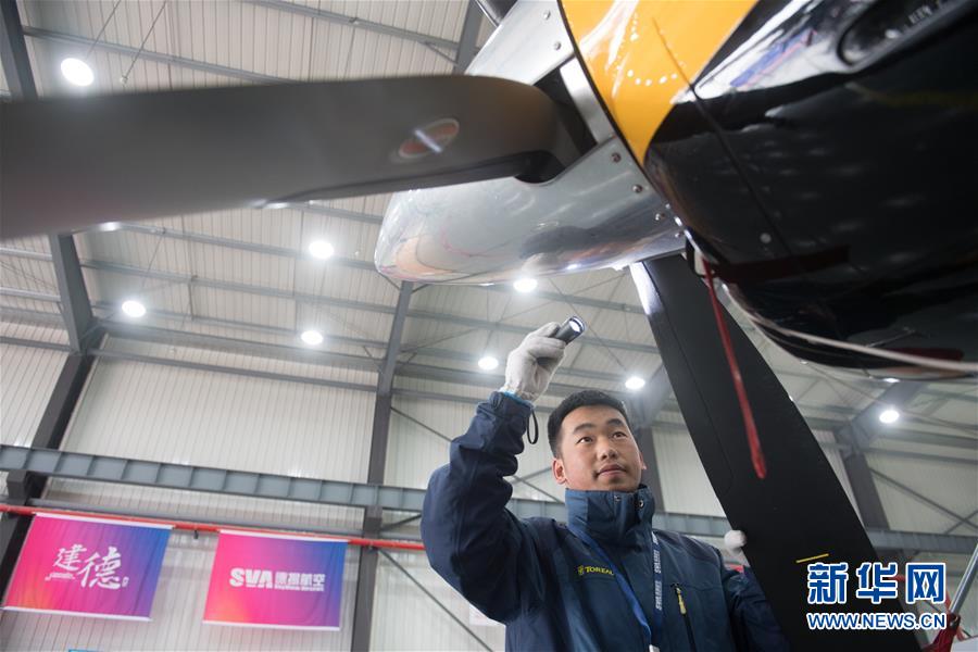 12月20日,在建德市航空小鎮(zhèn),工作人員對(duì)一架大棕熊100系列飛機(jī)進(jìn)行日常維護(hù)。 當(dāng)日,浙江省建德市航空小鎮(zhèn)通航制造板塊首架飛機(jī)下線交付。此次下線交付的大棕熊100系列Ⅱ飛機(jī)由美國(guó)Quest飛機(jī)制造公司出品,有望在通用航空領(lǐng)域發(fā)揮作用。建德市自2016年開(kāi)始航空小鎮(zhèn)創(chuàng)建,2017年被列入全國(guó)第二批特色小鎮(zhèn)名單。 新華社記者翁忻旸攝