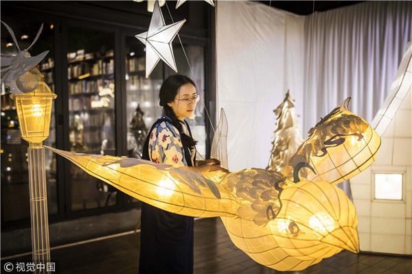 2018年5月6日,廣州,在天河區(qū)一家大商場辦個展時,用紙片做成的北極熊、大松樹、火烈鳥、紙房子在光線的配合下美輪美奐,吸引了很多顧客駐足?!皫缀趺總€人一看到,都會走進(jìn)那個夢幻的場景里,和這些紙雕一起合影。”圖片攝于2018年5月6日。