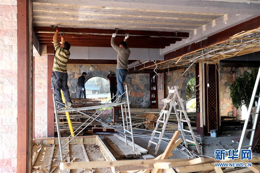 為實施“三線”劃定,工人在拆除喜洲鎮(zhèn)一處民宿(11月15日攝)。