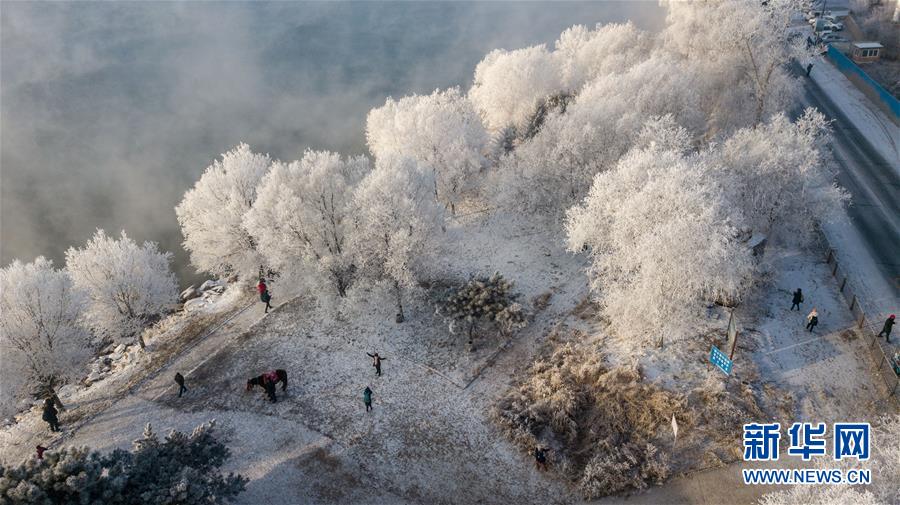 這是在吉林省吉林市豐滿區(qū)吉豐東路松花江畔拍攝的霧凇美景(12月12日無(wú)人機(jī)拍攝)。 新華社記者張楠攝