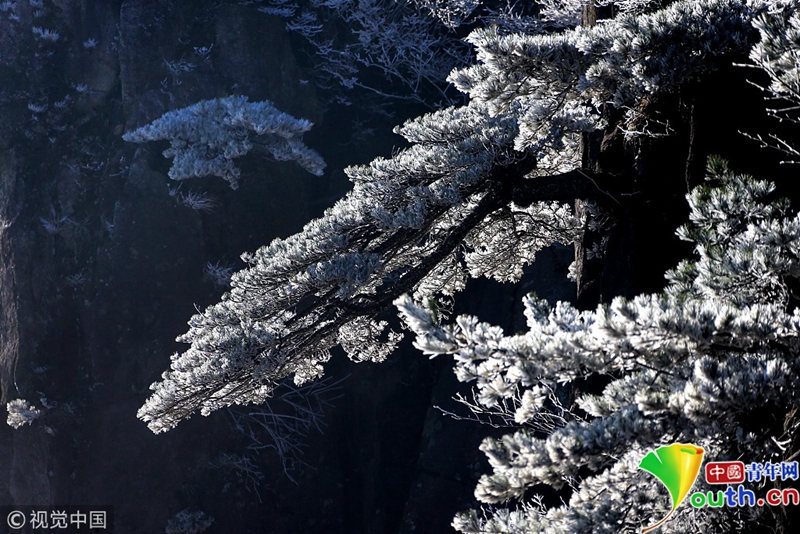 4月15日,安徽黃山出現(xiàn)了四月陽春罕見的霧凇奇觀。圖片作者:施廣德/視覺中國