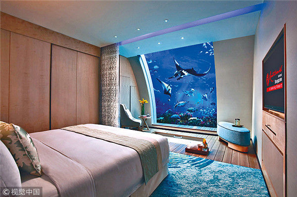 新加坡,圣淘沙名勝世界(Resorts World Sentosa),感受“上天下?!钡淖∷拮涛丁:Q箴^的深海奧秘生態(tài)區(qū)相連的特色套房。