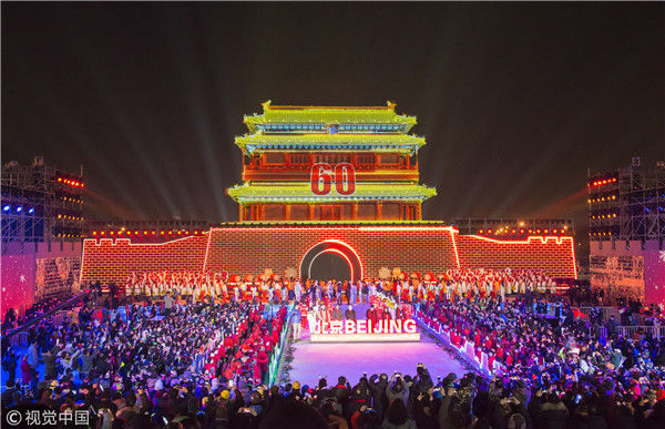 2017年12月31日,北京,2018北京新年倒計時活動暨北京冰雪文化旅游節(jié)開幕式現(xiàn)場。倒數(shù)60秒
