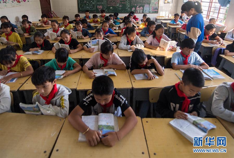 在云南省金平苗族瑤族傣族自治縣者米鄉(xiāng)中心小學(xué),孩子們?cè)诮淌依锷险n。云南省逐步在人口較少民族和“直過(guò)民族”聚居區(qū)實(shí)行從學(xué)前教育到高中階段的14年免費(fèi)教育(11月13日攝)。新華社記者 胡超 攝