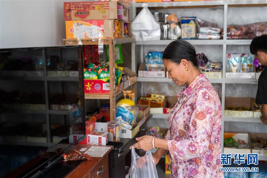 在云南省金平苗族瑤族傣族自治縣者米鄉(xiāng),一名苦聰婦女在自家開(kāi)的超市里給顧客裝食品(11月14日攝)。 新華社記者 胡超 攝