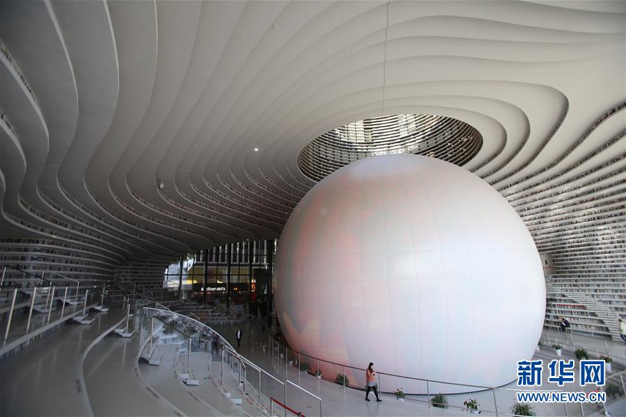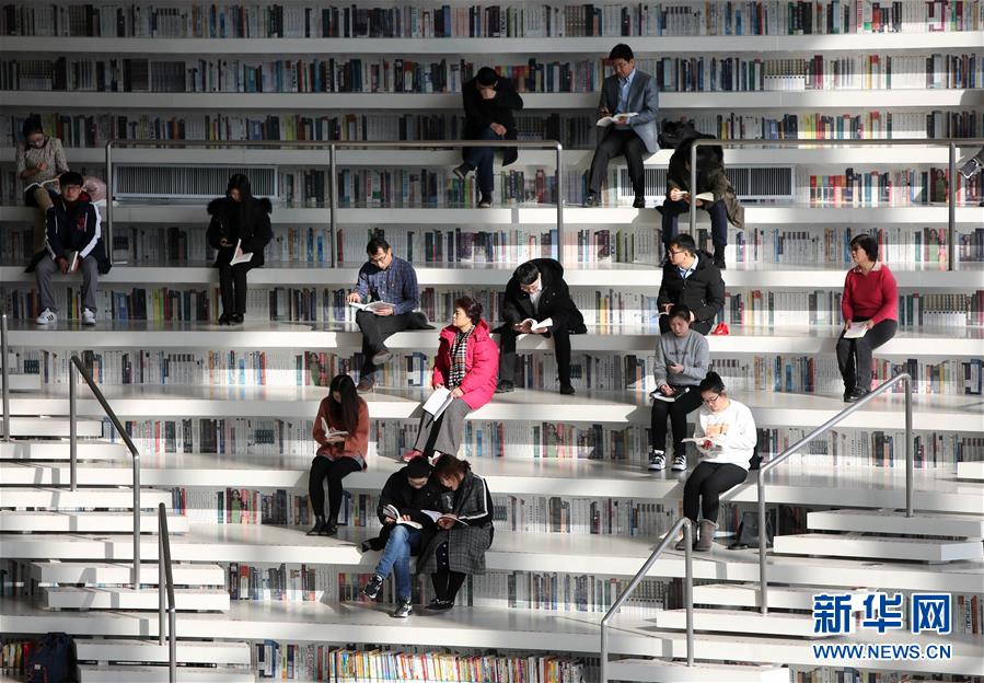 12月27日,讀者在天津濱海新區(qū)圖書館的“書山”上參觀。 濱海新區(qū)圖書館位于天津濱海文化中心,2017年10月1日正式開館,設(shè)計立意為“濱海之眼”和“書山有路勤為徑”。圖書館現(xiàn)有藏書60多萬冊,一年多來接待讀者約280萬人次,已成為濱海新區(qū)的文化“新地標”。 新華社記者段卓力攝