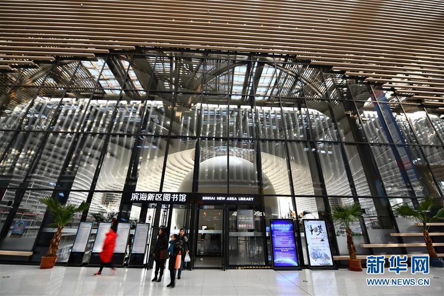 這是12月27日拍攝的天津濱海新區(qū)圖書館入口。 濱海新區(qū)圖書館位于天津濱海文化中心,2017年10月1日正式開館,設(shè)計立意為“濱海之眼”和“書山有路勤為徑”。圖書館現(xiàn)有藏書60多萬冊,一年多來接待讀者約280萬人次,已成為濱海新區(qū)的文化“新地標”。 新華社記者李然攝