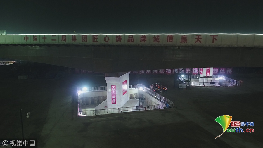 2018年12月1日,北京,大興國(guó)際機(jī)場(chǎng)高速公路重要節(jié)點(diǎn)工程“三線四橋”同步轉(zhuǎn)體工程順利完成。機(jī)場(chǎng)配套交通“咽喉要道”的打通,標(biāo)志著大興國(guó)際機(jī)場(chǎng)高速公路全線主體基本建成,軌道交通新機(jī)場(chǎng)線地上段基本貫通。美立/視覺中國(guó)