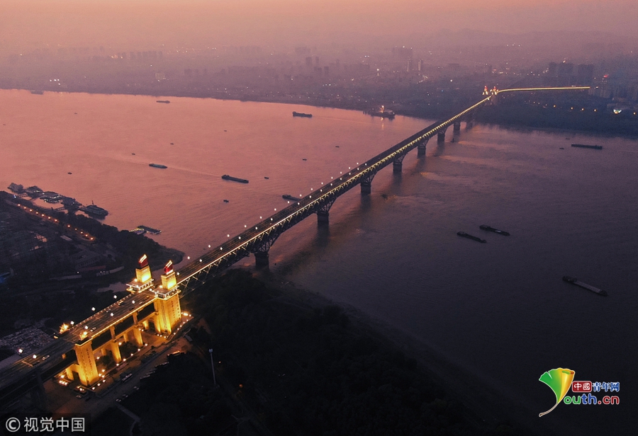 2018年12月13日,江蘇南京,“一橋飛架南北,天塹變通途。”作為我國第一座自行設(shè)計和建造的雙層鐵路、公路兩用橋,南京長江大橋在我國橋梁史上的重要地位不言而喻。從1968年建成后的48年間,它就如同一條巨龍,始終在長江上默默守護著人來車往。南京長江大橋上層是公路橋,下層為雙軌復(fù)線鐵路橋,連接津浦鐵路與滬寧鐵路干線,是我國南北交通要津和命脈。近年來,由于南京長江大橋公路橋的實際通行荷載遠超原先設(shè)計標(biāo)準(zhǔn),不僅橋面上擁堵?,F(xiàn),橋梁本身的種種“病害”也日益加深。圖為2018年12月13日,夜幕降臨,南京長江大橋歸位后的玉蘭花燈重新點亮。大橋玉蘭花燈柱共有299根,每根燈柱上有5盞玉蘭花燈,1大4小,一共1495盞。方東旭/視覺中國