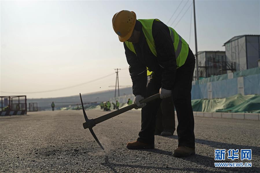 2019年1月1日,工人在北京大興國際機場中建三局三公司工地上剔鑿井口。 當日是新年第一天,眾多勞動者忙碌在工作崗位上。 新華社記者 才揚 攝
