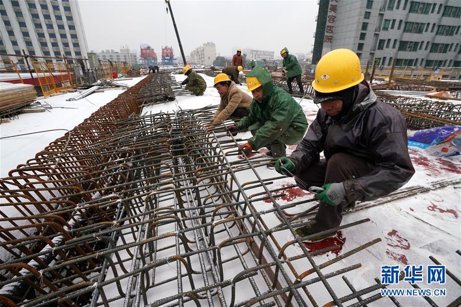 12月30日,南昌市洪都大道快速化改造工程項目工地上,中鐵四局五公司職工冒雪作業(yè)。新華社記者宋振平攝