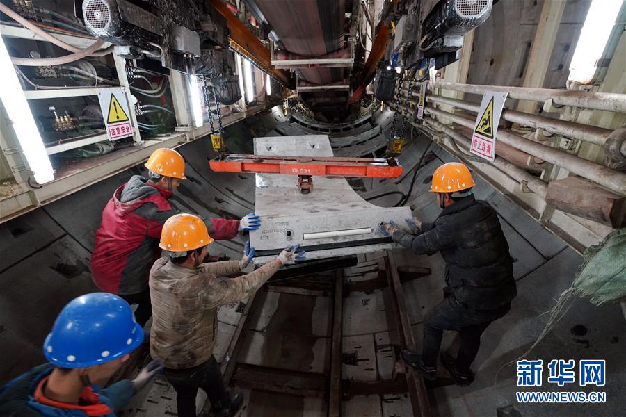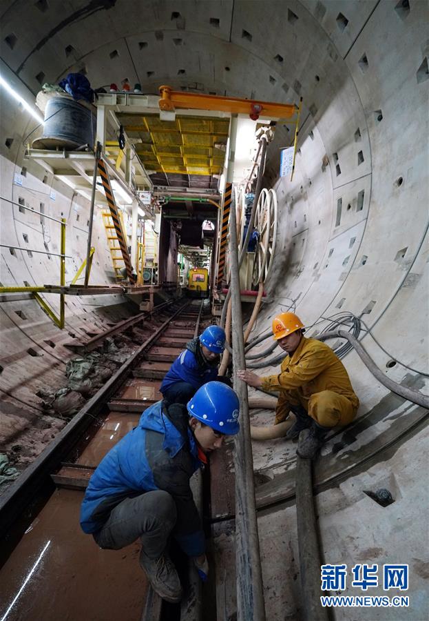 12月30日,南昌地鐵四號線西禮區(qū)間項目工地上,中鐵上海工程局集團有限公司的職工在進行施工。新華社記者宋振平攝