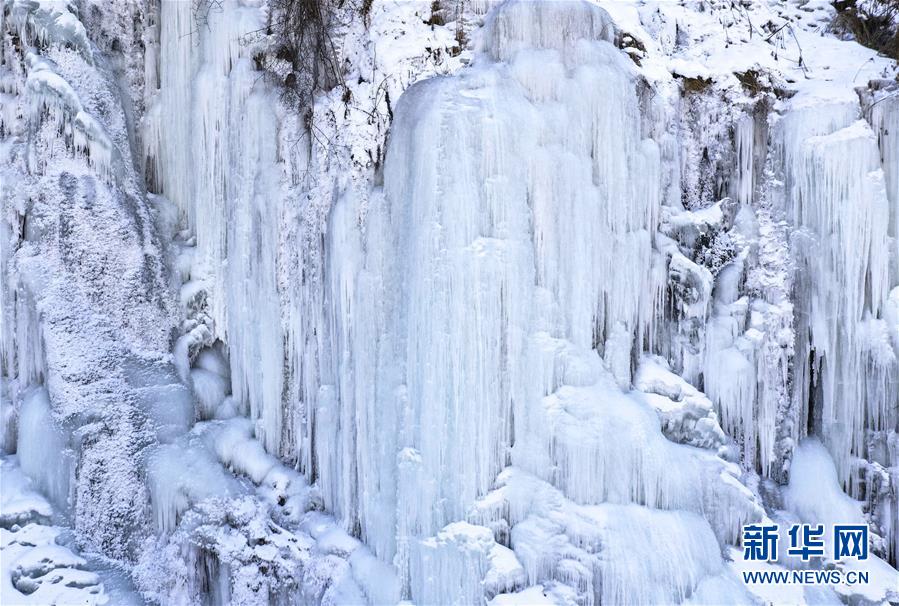 這是在吉林省長(zhǎng)白縣十五道溝望天鵝景區(qū)拍攝的冰瀑景觀(1月3日無(wú)人機(jī)拍攝)。新華社記者許暢攝