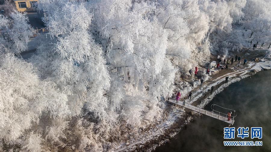 這是在吉林省吉林市豐滿(mǎn)區(qū)吉豐東路松花江畔拍攝的霧凇美景(12月12日無(wú)人機(jī)拍攝)。 新華社記者張楠攝