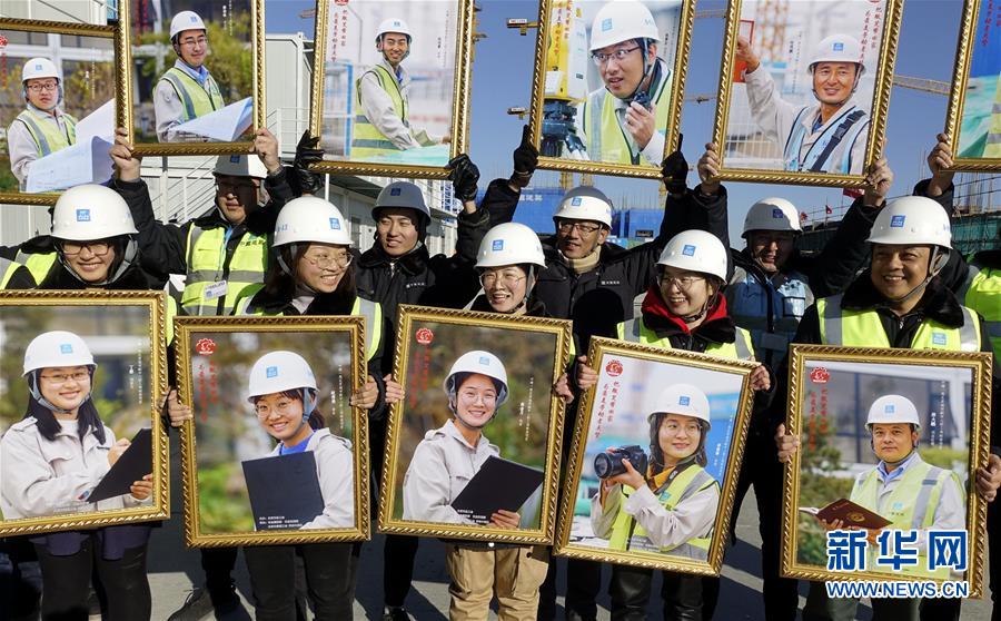 1月9日,中建一局北京城市副中心周轉(zhuǎn)房項目工地的建筑工人在展示自己的照片。 當(dāng)日,由北京市總工會主辦的工會“兩節(jié)”送溫暖活動之一的“把微笑帶回家,為最美勞動者點贊”大型公益活動,在中建一局北京城市副中心職工周轉(zhuǎn)房項目工地舉行。眾多勞動者獲贈“微笑”肖像照和保溫壺、毛巾等新春“大福包”。 新華社記者 李欣 攝