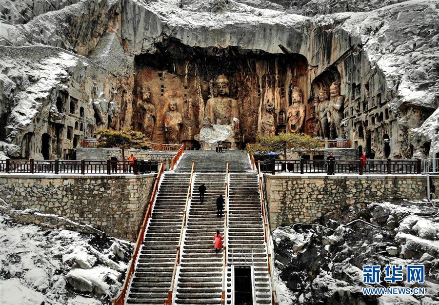 當(dāng)日,雪后的河南洛陽(yáng)龍門(mén)石窟景區(qū)銀裝素裹,一幅天然的水墨畫(huà)卷徐徐展開(kāi)。