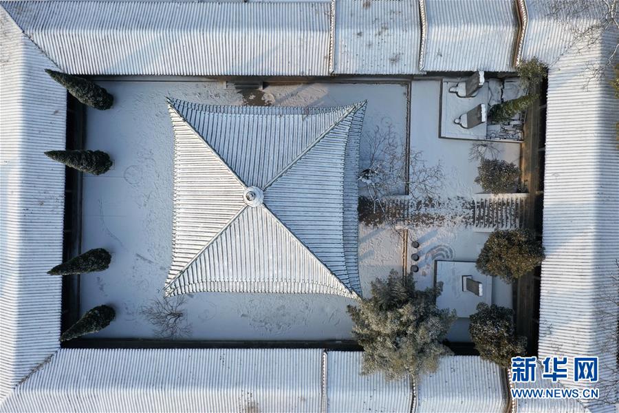 1月10日無人機(jī)拍攝的少林寺一景。當(dāng)日,雪后初霽,河南登封少林寺分外秀美。 新華社記者 馮大鵬 攝