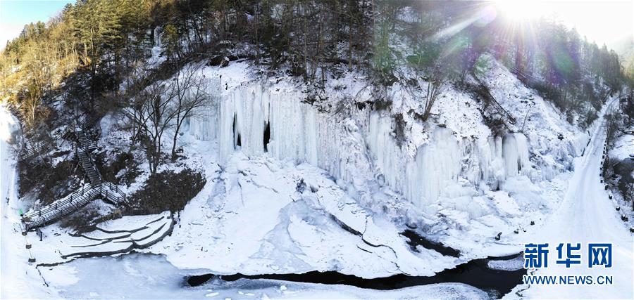 1月9日在云臺(tái)山景區(qū)拍攝的冰瀑景觀。 近日,受降溫影響,位于河南省焦作市的云臺(tái)山景區(qū)出現(xiàn)冰瀑景觀,奇特壯美。 新華社記者 李嘉南 攝