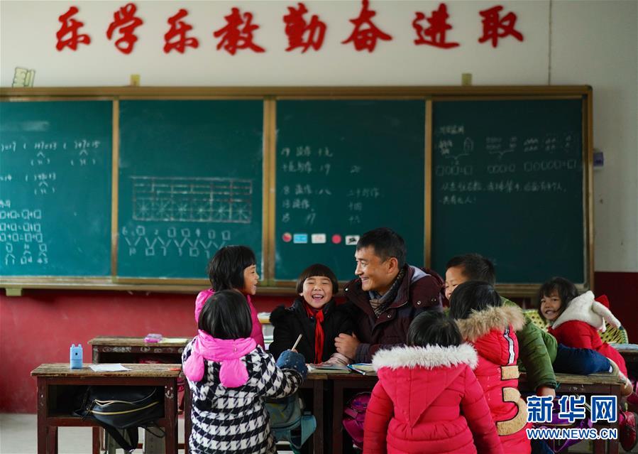 1月3日,章站亮利用課間時(shí)間給學(xué)生們講故事。由于黃泥村地處偏遠(yuǎn),學(xué)生的父母長(zhǎng)期不在家,章站亮的故事幾乎成為了學(xué)生了解外界社會(huì)的重要方式。 新華社記者 胡晨歡 攝