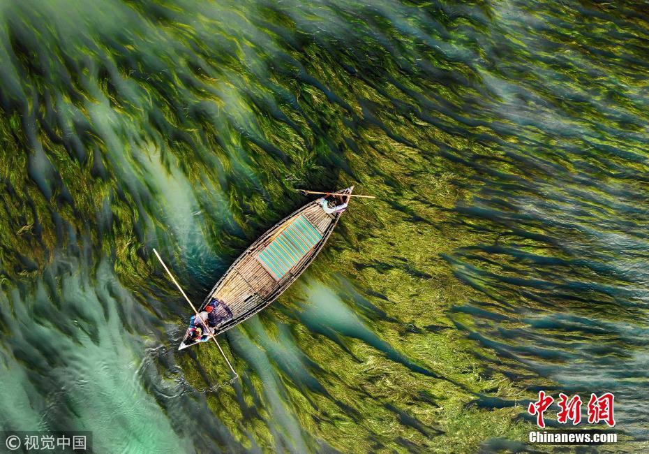 孟加拉國河流清澈見底 漁船暢行水藻間構成美麗圖畫