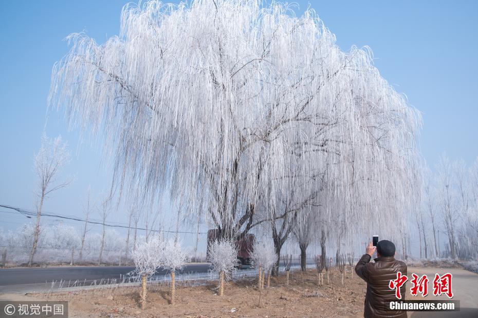 河北定州現(xiàn)霧凇景觀 吸引路人駐足拍照留念