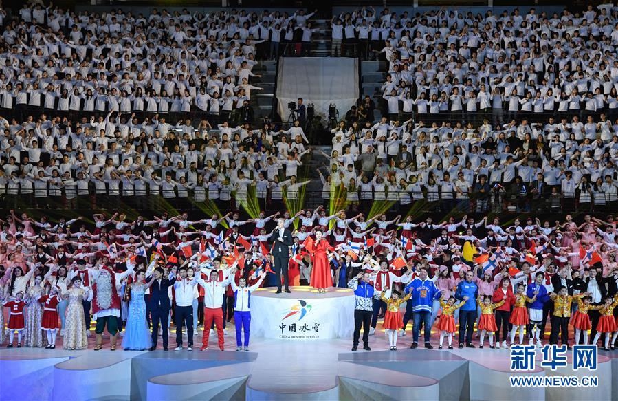 1月15日,演員在開幕式上表演。 當(dāng)日,“2019中芬冬季運(yùn)動年”開幕式在北京首鋼冰球館舉行。 新華社記者申宏攝