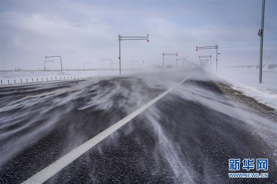 這是新疆瑪依塔斯風(fēng)區(qū)內(nèi)出現(xiàn)的“白毛風(fēng)”現(xiàn)象(1月15日攝)。 瑪依塔斯風(fēng)區(qū)位于新疆西北部額敏縣境內(nèi)。這里東西風(fēng)交替頻繁,一年大風(fēng)天數(shù)超過150天,是世界上罕見的暴風(fēng)雪災(zāi)害地段。駐守在這里的新疆塔城公路管理局額敏分局瑪依塔斯應(yīng)急保障基地,近年來連續(xù)裝備拋雪機等冰雪搶險救災(zāi)裝備,有力地保障了這條道路的交通安全。 新華社記者趙戈攝