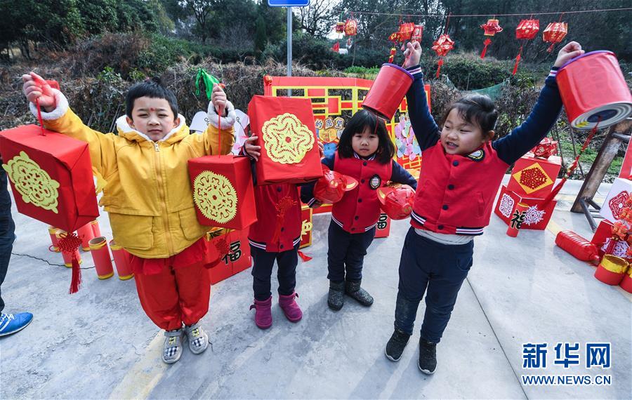 1月16日,孩子們展示用廢舊物品制作的環(huán)保節(jié)日花燈。 臨近春節(jié),浙江省長(zhǎng)興縣開(kāi)發(fā)區(qū)中心幼兒園的老師和孩子們來(lái)到長(zhǎng)興縣太湖街道下屬的新塘村,為村民表演文藝節(jié)目,用喜慶的傳統(tǒng)舞蹈營(yíng)造節(jié)日氣氛。另外孩子們還用紙盒、瓶子、彩色包裝紙等廢舊物品制作了環(huán)?;簦徒o村民,倡導(dǎo)低碳環(huán)保的節(jié)日新風(fēng)。 新華社記者 徐昱 攝