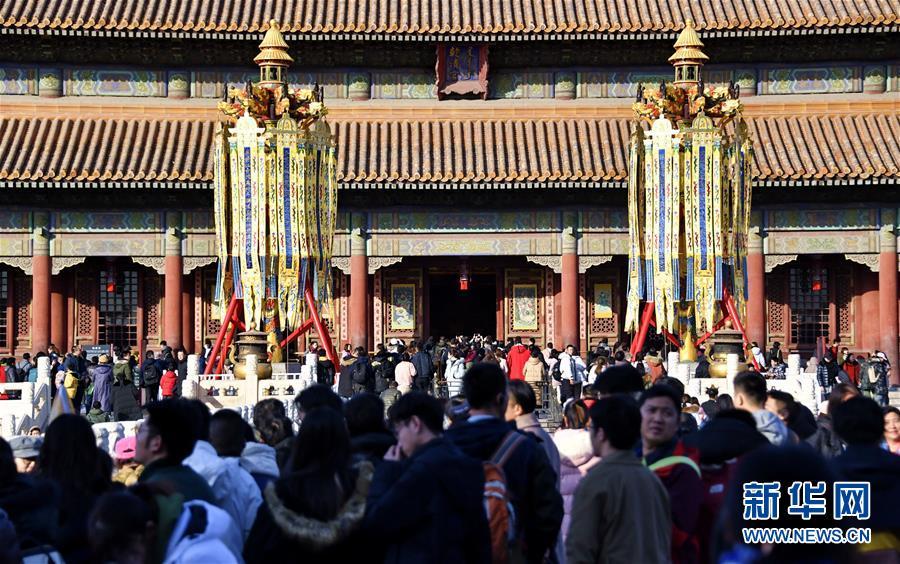 這是在故宮內(nèi)拍攝的宮廷萬壽燈(1月25日攝)。 春節(jié)將至,北京故宮博物院內(nèi)張燈結(jié)彩,到處懸掛著宮燈、萬壽燈、年畫、門神、福字等古代宮廷節(jié)日裝飾品,讓來自國(guó)內(nèi)外的游人感受到濃濃的年味。 新華社記者 李欣攝