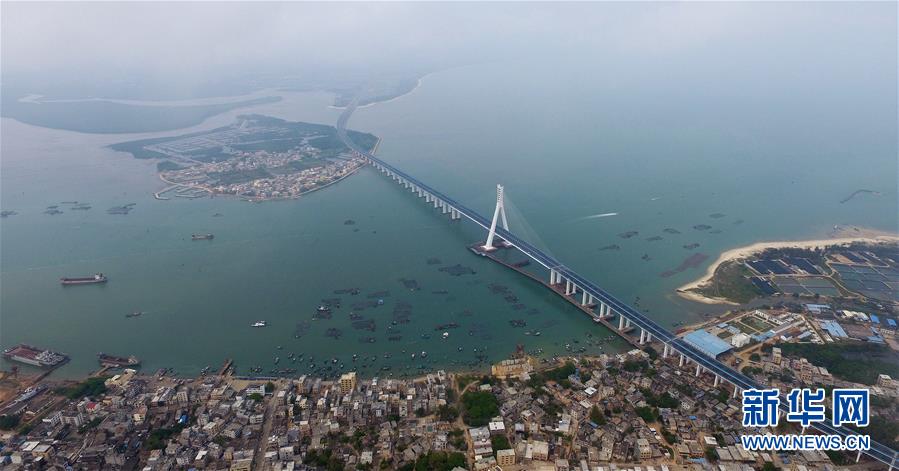 這是3月18日無人機拍攝的海南海文大橋。3月18日,中國首座跨越地震活動斷層的跨海大橋——海南海文大橋建成通車。海文大橋(原名鋪前大橋)連接??谑醒葚S鎮(zhèn)和文昌市鋪前鎮(zhèn),全長5.597公里,其中跨海大橋長約3.959公里。大橋通車后,從海口到文昌鋪前鎮(zhèn)的路程將由原來的1小時30分鐘縮短至約20分鐘。 新華社記者郭程攝