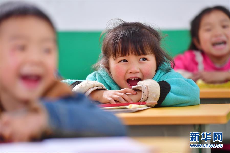 在黔桂烏英苗寨,孩子們在學(xué)校里上課(3月27日攝)。