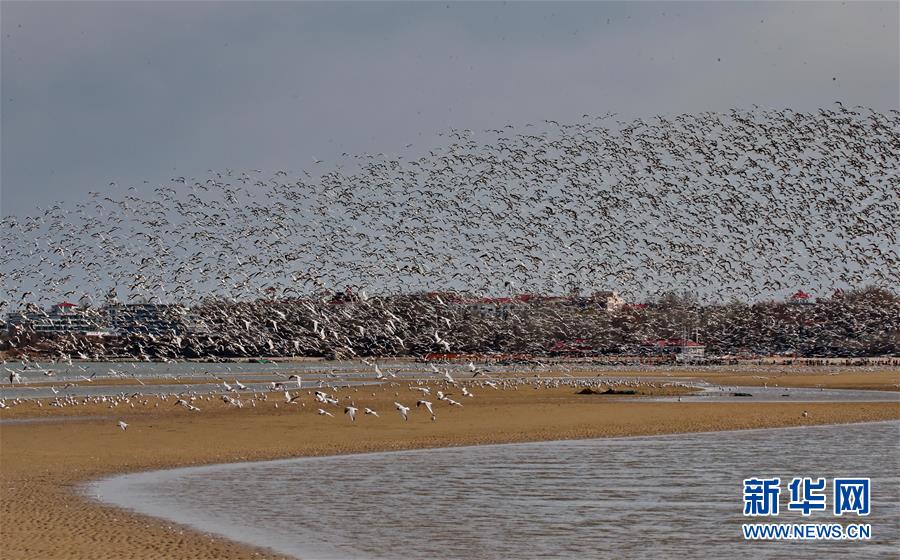 4月4日,一群候鳥在秦皇島市沿海濕地飛翔、休憩。近日,大批候鳥飛抵河北省秦皇島市沿海濕地,出現“萬鳥臨?!逼嬗^。秦皇島沿海濕地鳥類食物豐富,每年春、秋兩季,大批候鳥遷徙經過這里。新華社記者 楊世堯 攝