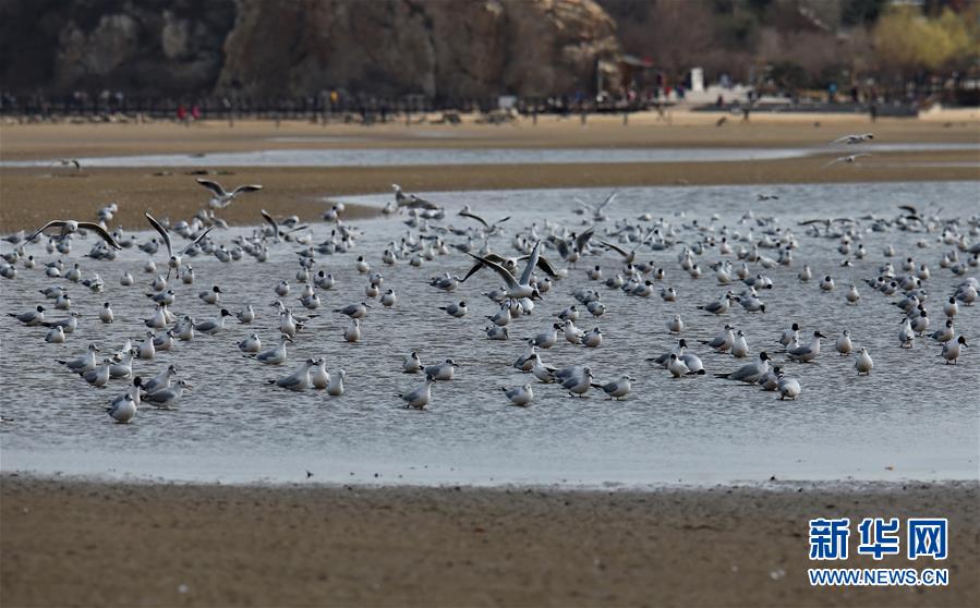 4月4日,一群候鳥在秦皇島市沿海濕地休憩。近日,大批候鳥飛抵河北省秦皇島市沿海濕地,出現“萬鳥臨?!逼嬗^。秦皇島沿海濕地鳥類食物豐富,每年春、秋兩季,大批候鳥遷徙經過這里。新華社記者 楊世堯 攝