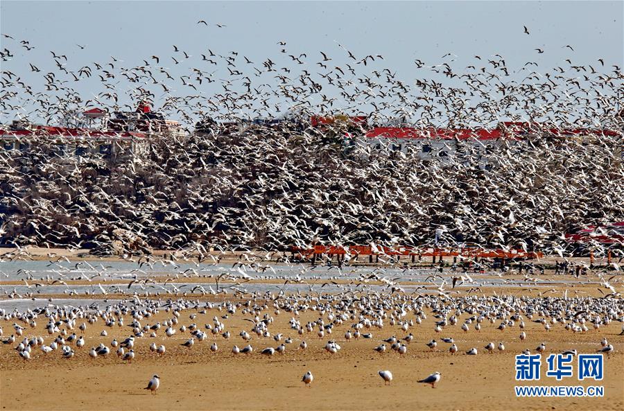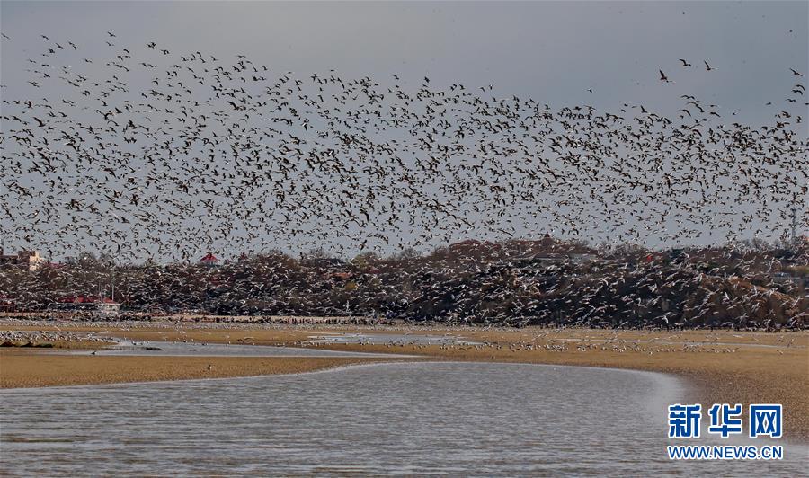 4月4日,一群候鳥在秦皇島市沿海濕地飛翔、休憩。近日,大批候鳥飛抵河北省秦皇島市沿海濕地,出現“萬鳥臨海”奇觀。秦皇島沿海濕地鳥類食物豐富,每年春、秋兩季,大批候鳥遷徙經過這里。新華社記者 楊世堯 攝