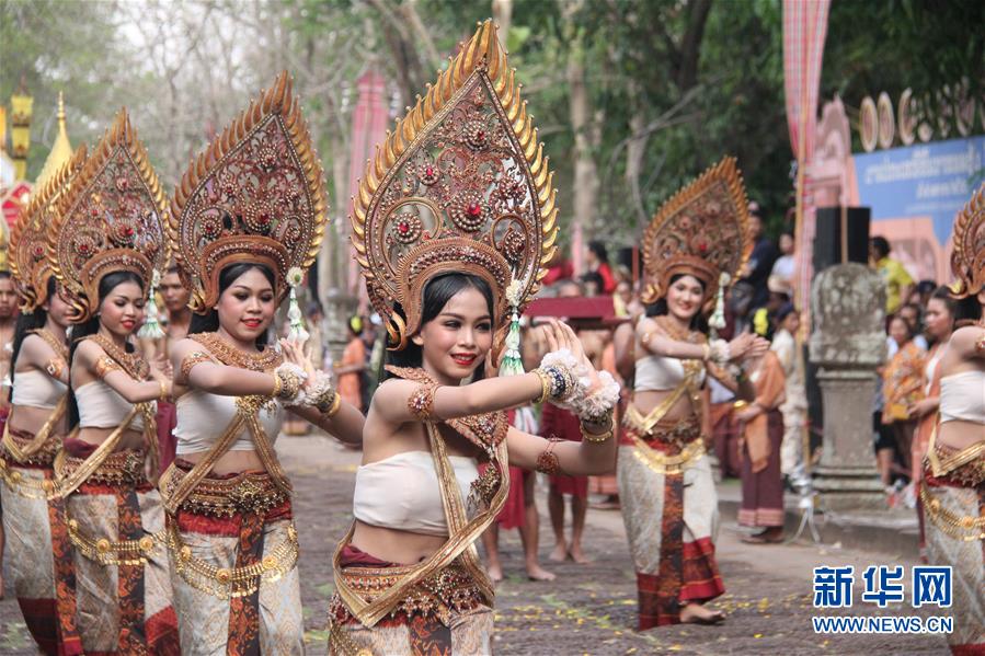4月5日,在泰國(guó)武里南府,當(dāng)?shù)嘏源虬绯上膳臉幼釉谂羶z隆寺前跳舞。 一年一度的“登帕儂隆山節(jié)”在泰國(guó)東北部毗鄰柬埔寨的武里南府帕儂隆山舉辦。當(dāng)?shù)厝艘怨叛b巡游展示獨(dú)特的傳統(tǒng)文化,希望能吸引更多外國(guó)游客、促進(jìn)當(dāng)?shù)芈糜螛I(yè)發(fā)展。 新華社記者 楊舟 攝