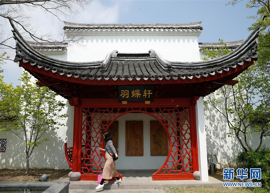 2019年4月20日,游客在韓國(guó)順天灣國(guó)家園林里的中國(guó)寧波園羽蝶軒前游玩。位于順天灣國(guó)家園林世界園林展區(qū)的中國(guó)寧波園以梁山伯與祝英臺(tái)的凄美愛(ài)情故事為主題,利用水、橋、石頭和樹(shù)木等為游客呈現(xiàn)極具中國(guó)特色的園林景觀。 新華社記者王婧嬙攝