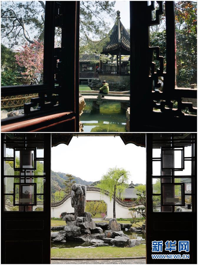 這張拼版照片展示的是:上圖,2019年4月2日,游客在中國(guó)蘇州留園內(nèi)游覽(新華社記者杜涓涓攝);下圖,2017年9月23日,在美國(guó)紐約寄興園舉行的迎中秋活動(dòng)上,孩子們?cè)谥驹刚叩膸ьI(lǐng)下參觀(新華社記者王迎攝)。