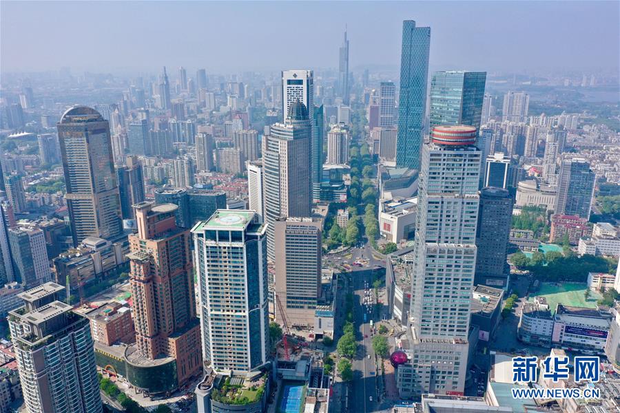 這是4月19日無人機(jī)拍攝的南京新街口。 新華社記者 李博 攝